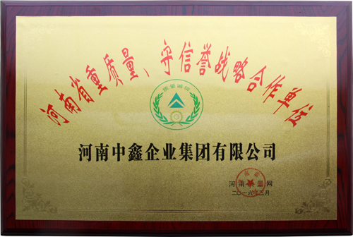 河南中鑫集团荣获“河南省重质量、守信誉战略合作单位”荣誉称号
