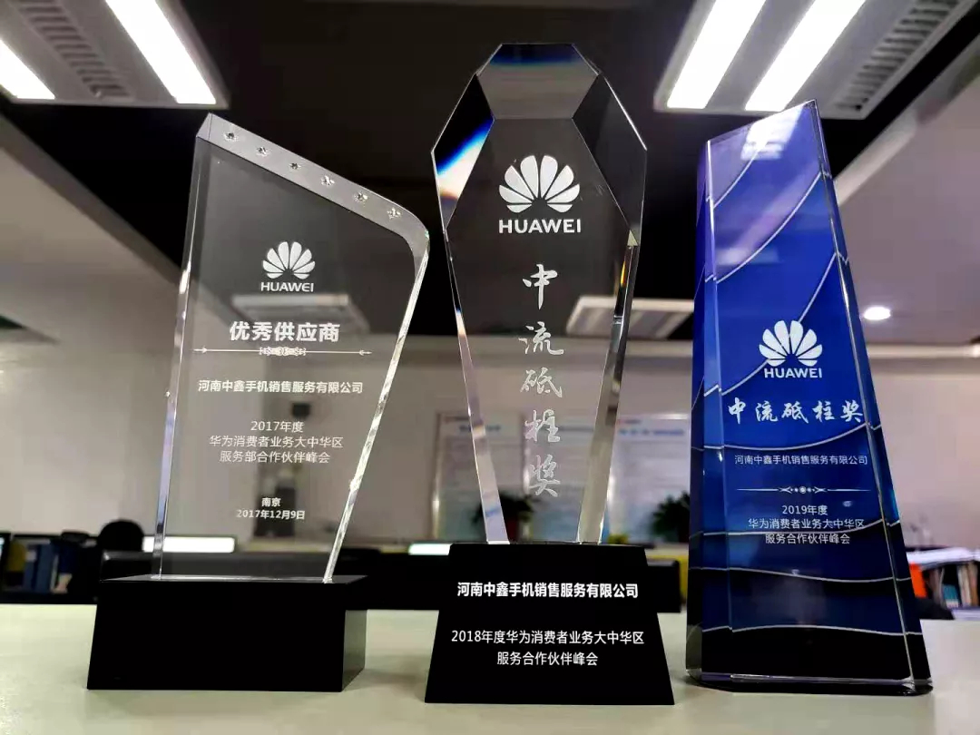 河南中鑫手机销售服务有限公司继2017年获得“优秀供应商”、2018年获得“中流砥柱奖”后,再次荣获华为2019年度的最高奖项——“中流砥柱奖”。连续3年获得华为年度最高奖项,这是厂家对我们的认可,更是我们全体同事共同努力的成果。