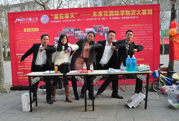 自2012年冬季以来,鑫悦车友俱乐部共举办4次社区募捐活动,2次爱心慰问,1次大型慈善活动。在这短短的几个月时间里,让社会各界感受到中鑫之宝所传递的正能量。在这期间我分别与恩来公益、玖久社工、精诚康复中心、若木书院、黄河慈善等十几家民间慈善机构合作,共同向社会传递爱心。即便如此,我们的力量仍是有限的,中鑫之宝呼吁社会各界共同努力,向弱势群体、贫困人群奉献爱心,传递“正能量”!