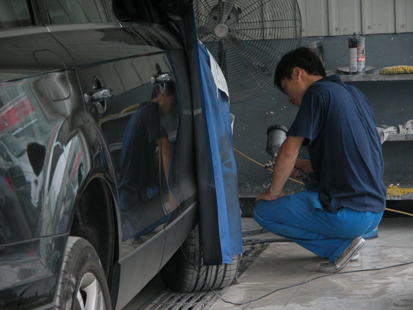 (一)、高温下,喷漆员工正一丝不苟在户外作业,尽管天气炎热,可他们脸上依然神情专注,依然是那么灿烂!