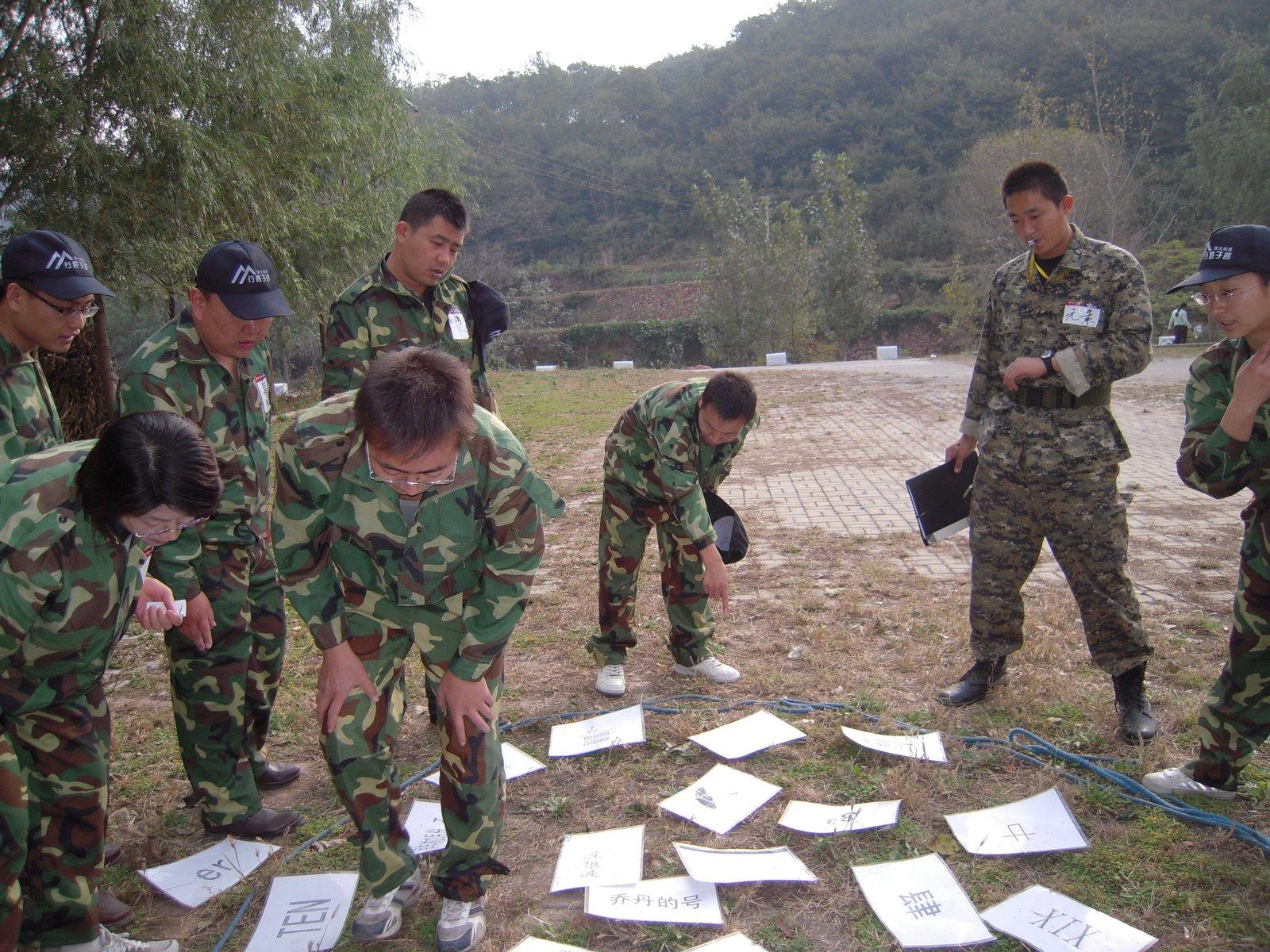 整个军旅拓展分四块内容,并在其中体现了“体验,交流,分享,整合,应用”的拓展思维。