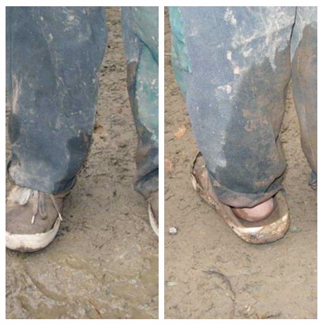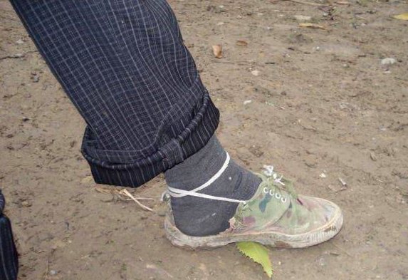 4、再看看这个,这个是前年冬天的时候我搜集的,(背景:下大雪了,中午时分,太阳出来了,学校周围的雪已经融化,满地的泥泞,气温好像比下雪时还要冷!)早晨,他就是穿着这双家里最好的鞋,踏着皑皑白雪,走了四个小时的山路才到的学校,虽然迟到了很久,但让老师很感动,他还是来了!尽管鞋子很单薄,尽管山路很难走,尽管雪下了厚厚的满地!