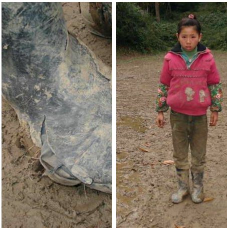 2、她叫李德风,一个一年级的学生,因为家庭条件有限,十一岁才开始到学校读书,她有一双格外扎眼的“水鞋”。第一次看到这个鞋子的时候,我才发现贫困这个词,原来就这么血淋淋的存在着。