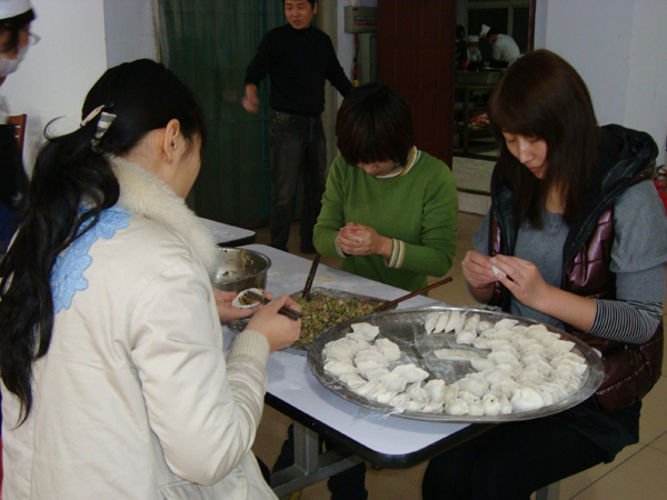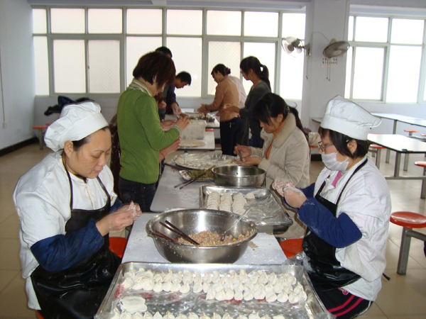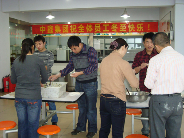 行管部孙健提前与食堂渠师傅及其他同事商量如何准备冬至当天的伙食,让大家过个温暖的冬至。速冻水饺虽然方便,但品味不佳,且没有深厚的家的感觉。渠师傅建议大家动手自做水饺,现包现吃,为大家送去冬日别样的温暖。