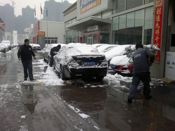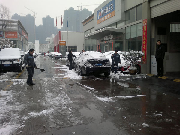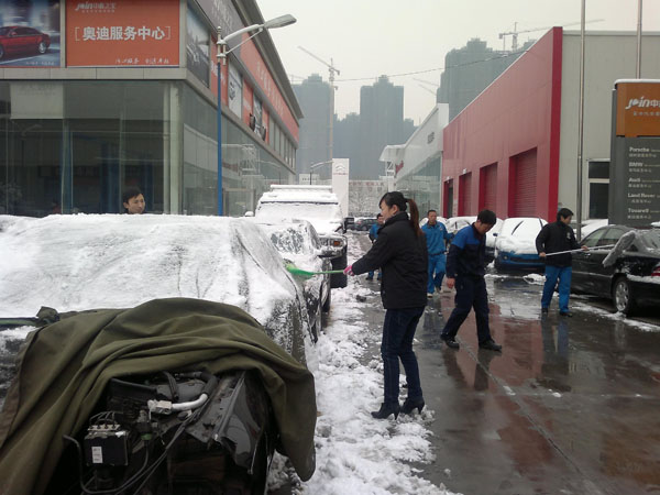早上起来,整个世界都被染上了白色,晶莹而完美,然而,积雪给我们带来喜悦的同时,也给我们的客户带来了不便。可爱的中鑫人为了给客户提供一个良好的环境,一到公司就开始自发的清扫积雪。