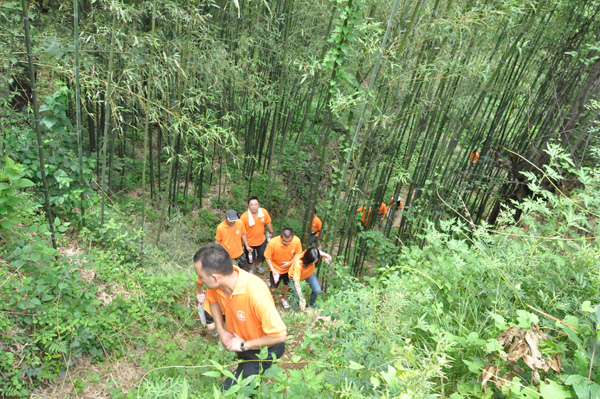 英雄岭迎来的最后一批中鑫人是来自通信重庆分公司的陈涛、王富广和集团人力的吴文庆。这三人属于会务组人员,在给大家分完水、拍完照之后,别的同事都上山腰了,他们还在山脚下,但他们依旧向前,不为奖品,只为能把步伐登得高一些,只为能看到更多的风景。