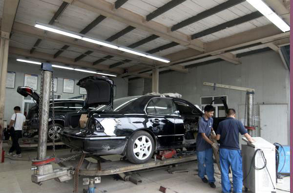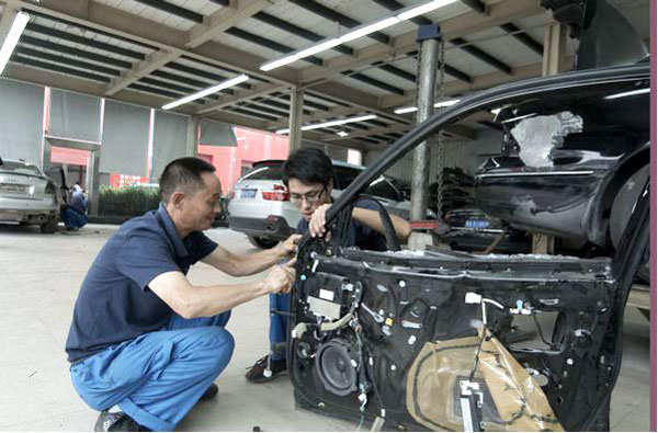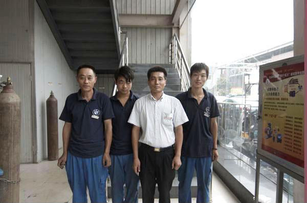 位于郑汴路中博汽车广场内的中博店是中鑫之宝的摇篮,业务之繁忙,一直为业界所瞩目。“很多时候我们车间的维修车辆达14台,忙到深夜也是经常的事”。钣金车间主任王圣方告诉记者:这次修楼梯的事情,是大家自发组织的,为了不影响工作时间,等到下班才进行。大家只要做了,就会做到最好,再苦再累也不怕。