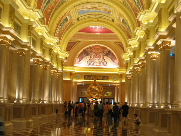 赌,在澳门是有名而又合法的。威尼斯是有名的赌场,那里一楼上千平米的地方摆满了赌桌,桌边坐满来自世界各地的人们,场内的壮观仿佛梦境般的令人不可思议。二楼的商店装饰的富丽堂皇,天空是那么的湛蓝,地面油晃晃湿漉漉好似秋雨初歇。“你们看天空像真的吗?”导游说。大家原本还很纳闷,在导游的解说下我们才知道原来这里的环境是人造的,天空是虚拟的,地面也是虚拟的。人的智慧无法想象,人造天空更是堪称世界一绝!赌场给我又一个震撼,那就是他们的专业,不论你在哪张赌桌前坐下,有不懂的可以问巡场的工作人员,发牌先生小姐的动作优雅娴熟自信,交接手时都拍一下双手,确认没有夹带,任何支付货币都可以兑换成筹码,总之,你能想到有认为需要的都因为你想好了,一切以顾客为中心,真不愧是专业赌场。