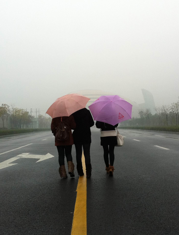 照片摄于下雨的秋天,照片中三个伙伴相伴在雨中前行,由于一位伙伴没有雨伞,两人同打一把伞,顿时让冰冷雨水打湿的画面温暖了许多。如果,在人生的道路上,在我们遇到困难的时候,我们身边有这样的朋友陪伴着,是多么的幸福,应该说也是一种幸运。