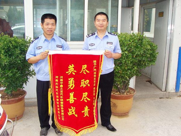 在今年9月份的晚上2点多,我们的保安马全明、代国亮像往常一样在厂区内巡逻,当巡逻到机电车间的时候他发现有一个高高大大的黑影从车间朝门外走,凭借多年的经验,他们马上意识到遇到小偷了,他们尾随其后,发现小偷肩上扛着个千斤顶,他们打了个手势,一个人打110报警,一个人跟着小偷,当小偷走到花坛的时间他们大喊一声,齐心协力制服了小偷。民警从小偷身上收出一把刀。想想这是多么的惊险。第二天,田总表彰了他们,并颁发了锦旗和证书。事后问他们当时面对一个将近一米八的小偷是怎么想的,而且身上还有刀,马全明却说:“当时也没想那么多,只有一个念头,抓住小偷,不能让公司的财务丢失,因为这是我们的职责”。没有华丽的语言,没有一点虚伪。难道说他们不是我们最可爱的人吗?