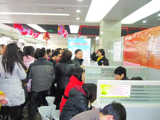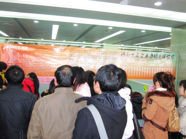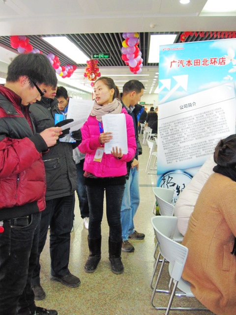 2012年2月4日我随同李芳、市场部于姐、广本店周经理参加了由中鑫集团在河南省人才市场订的招聘展位,当天招聘会现场的应聘者很多,一大早入口处就排了长长的队伍,我们也早早的到了现场布置会场。中鑫之宝的招聘海报一贴出去,立即引来了其它公司和应聘者的注意,在当天的招聘会上,我们靠着这醒目独特的招聘海报赢得了“先机”。