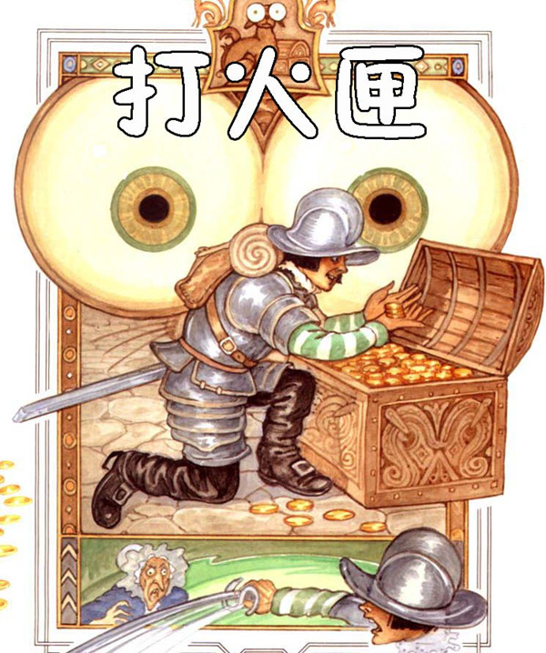 凯旋而归的士兵在树林边被一个巫师拦了下来,巫师请他帮忙到一个树洞里去取一个打火匣,士兵问清楚怎么办后,就在腰间系上一根粗绳子,带着巫师的一件外套勇敢地钻进树洞,看见一个很大的箱子,但旁边有只大犬看守着。士兵急忙按照巫师的吩咐把外套披在大犬身上,大犬就不作声了,他把箱子打开,看到里面全是黄灿灿的金子,就抓走一些放进口袋里,又在房间角落里找到巫师需要的打火匣,就顺着绳子,爬出了树洞。巫师只要打火匣而不要金子,士兵觉得奇怪了,但此时的巫师却眼露凶光,士兵意识到自己生命危险,连忙抽出利剑刺向巫师,一翻打斗,士兵胜利的带着金子和打火匣转身向京城走去。士兵因为有了金子就住在城里最好的旅馆里,穿着华丽的衣服,吃喝玩乐,也结交了很多的朋友。一天,一个朋友告诉他国王的女儿漂亮极了,还没有结婚,但预言家告诉国王,说公主要下嫁一普通士兵,这是国王所不愿意看到了。士兵于是也想见见这位公主,于是常去皇宫附近游玩,但一直没有机会看到公主。一段时间以后,士兵把钱全花光了,有天晚上,没钱吃饭的他只好饿着肚子,但这时他想起了打火匣,就随手拿出来在火石上轻轻一擦,这时火光一闪,士兵面前出现了只大犬,原来就是树洞里的大犬,大犬安静地站在士兵面前,毕恭毕敬地问:“我的主人,需要我为您做些什么?”士兵不敢相信这是真的,他想了一想,才说:“替我弄一些钱来吧!”犬离去,不一会就叼回一个满满钱的袋子,这时的士兵终于明白了这是一个多么神奇的打火匣。在打火匣的再次擦过去,大犬终于把公主给带到他的地方,几次相见之后,他们相互产生了情愫,但不幸这事被国王发现了,但在打火匣的神力作用下,国王也只好应允了他们,士兵和公主高高兴兴地结合在了一起。