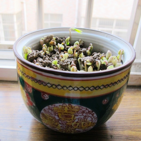 远离郑州的森林公园靶场鱼塘、黄河岸边还有东风渠之后,垂钓郊游的机会基本为零。节假日休息,也是跟亲人蜗居在西安的家中打扫房间,宋总小儿子的到来让我暗暗计划着:抓紧计划再要个二胎。除了以上内容,总想着在这个陌生的城市再做些什么,一眼瞥见房间角落里面的酒罐。灵感再现之后,丢了几颗绿豆的种子。摆在了阳光充足的阳台,每日浇水给予充分的照顾。4月8日早上观察种子的生长情况时,顿时欣喜若狂,竟然发出了嫩嫩的芽,我再次感悟到了生命的力量!