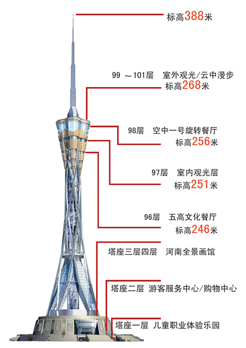 它位于郑州市航海东路1206号,建筑面积5.8万平方米,建筑高度388米,是河南省“十一五”规划的重点文化建设项目、河南省文化产业的标志性建筑。是集广播电视信号发射、旅游观光、餐饮购物、文化娱乐、名胜展示、会议庆典等多功能于一体的大型现代化旅游景点。公司项目是建设出高档的周边配套设施。我等得天时地利人和,才有幸赶早一睹其风采。