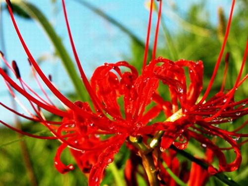 第一次认识曼珠沙华还是在QQ虚拟农场里,五颜六色的花瓣给人留下深刻的印象,艳丽而妖娆,无与伦比的残艳与毒烈般的唯美,但看后心中涌起莫名的悲凉,感觉它和罂粟很像,承受太多不公平的指责,缺少太多真心的祝福!