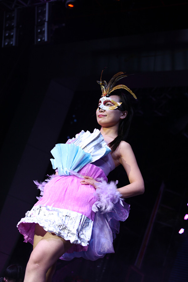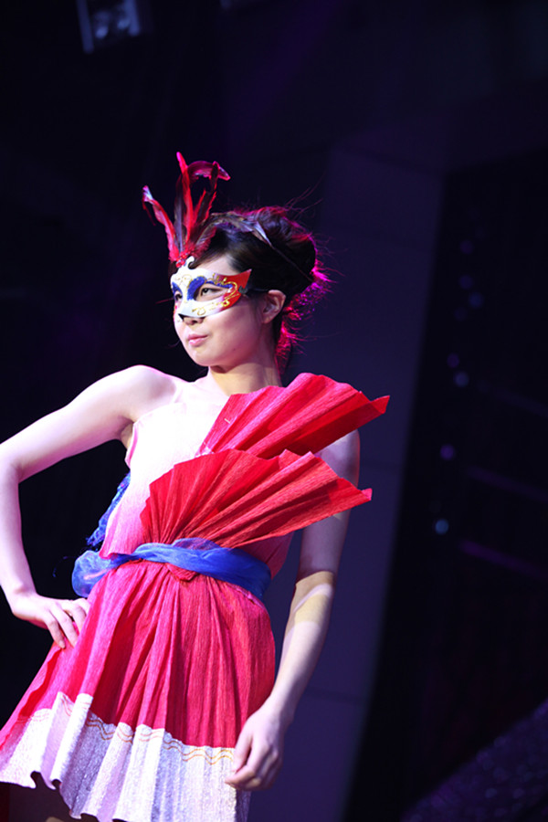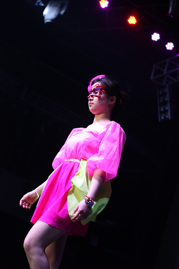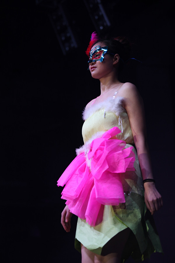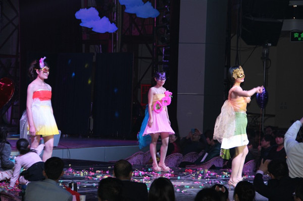 当你看到15套色彩搭配恰到好处,造型毫不雷同的华丽演出服时,你怎么也不会想到这些衣服都是一张张鲜花包装纸组成的吧?更让你意想不到的是,这些衣服还是由我们的非专业设计师王莹莹一手设计打造的呢。小姑娘有才吧,佩服吧,反正我是羡慕嫉妒恨了。