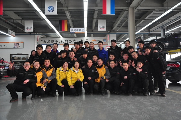 2012年的冬天格外寒冷,室外温度经常在零下8°左右,中鑫之宝花园店奥迪车间的几个班组,相互比拼着接车,郭兰明师傅坚守岗位,任谁叫也不走,一定要第一时间接到车辆,如果真有急事,必须由班组其它成员替代他才放心走开;早上往奥迪车间路过,总能见到王炎涛“班长”和大家一起静静打扫车间卫生,扫帚拨动柱子下面的泥灰,一点一点,直到犄角旮旯完全干净,他的认真大家有目共睹,对待维修更是如此。他们也只是其中的一个缩影,大家互相PK,你追我赶,任何一处影响团队作业的小动作,都格外小心翼翼,生怕出了差错而蒙羞。集体荣誉感,在这个团队中,已经开始成为共同认可的协作导向。