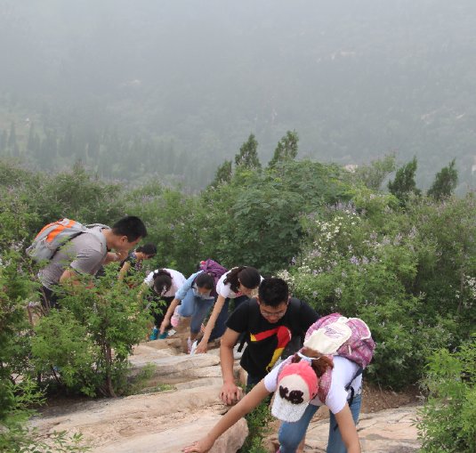 俗话说的好,爬山容易下山难,下山的路尽管都是台阶,可弯弯拐拐着实不易,真想有个滑梯滑下去再也不动弹,用了两个小时,才从山上下来。再看众人,没了上山时的欢实,个个安安静静,都累了吧,累了,就回家吧。一天的行程结束了,牺牲了早晨的美梦,换来了勇敢的攀爬,用周日的虚耗,填满了人生一天的流白,当有一天老去,再翻开此时的一页,会发现,有意义的事情只在一念之间。加油吧,同伴们!