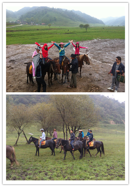 车子行驶了将近3、4个小时左右,就到达了目的地——宝鸡市陇县关山牧场,一个有着独特自然风景和悠久历史文化的地方。大概中午12:00的样子,我们到了草原,首先由人力资源部给大家安排下住宿,紧接着就是农家乐式用餐。一直在喧闹的城市,工作、生活,今天终于可以融入自然,体验这份轻快舒适的惬意……这份来自大草原的幸福感不禁油然而生……