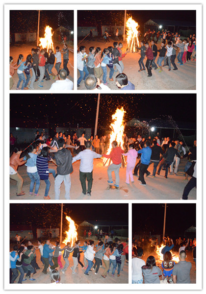 待到大家都吃饱喝足了,接着又迎来了期盼已久的篝火晚会。伴着激情的音乐,当地的工作人员绑好木堆,点燃篝火,大家围着篝火翩翩起舞,引吭高歌,当