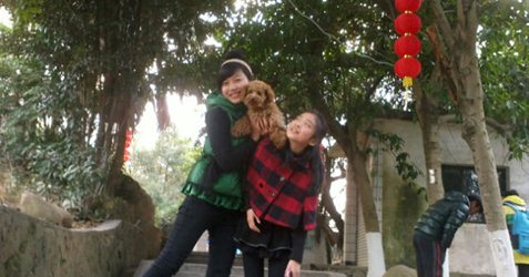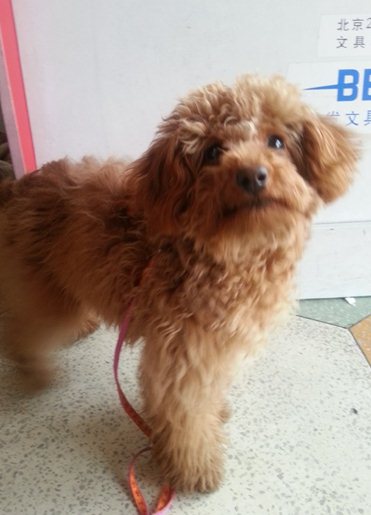 那是去年九月的一个黄昏,我正坐在电脑前学习课程,门口响起安之的声音:“小红马老师,你快过来看!”我站起来往门口一瞧,嘿!一只栗色的小狗惊慌地蹲在安之的身后,安之轻轻拉了下小狗脖子上粉红的绳子,但小狗一动不动地趴在地上,它有着黑色的鼻子,嘴上可爱的弧线,黑葡萄似的发亮的小眼睛,胸前还有一小撮雪白的毛,经过我的一番观察后确认这是只泰迪犬。“这是你的狗?”我问安之,安之拨弄了一下门旁垂下来的绿萝淡淡的点了点头,她告诉我这是亲戚送给她的,但是家里养不了也不会养,就送给我了,我高兴地抱起了还趴在地上的小狗准备给它“接风洗尘”。由于它是只娇羞的小母狗,我和安之一致决定给它起名叫娇娇。