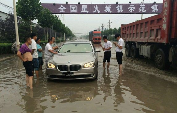“西四环马寨村有一辆宝马困在水中,请迅速安排救援车来!”下午五点,中原店宝马总监闫军接到市场部同事发来的信息,他赶紧安排张浩清和张兴伟两个小伙子开着救援车赶赴救援地点,他们根据市场部发来的联系电话及时跟客户联系,安慰他不要慌,救援车马上就会赶过去。到达救援地点后,他们看见了中原店市场部的两个同事和客户朋友围在车旁边无计可施,客户被困在车内无法出来,而发动机因进水已熄火。要想把车从水里推出来就必须先解除停车档,而要想解除停车档必须先得钻到车底下才行。这么大的雨,这么深的水可怎么办呢?张兴伟来了后,二话没说,脱下体恤就往车下钻,车下全是水他连眼睛都睁不开,但他凭着对宝马车的熟悉还是很快就拆下护板,解开了停车档。车被迅速从水中拖出来拉进了店内,客户感动的不知道说什么才好。