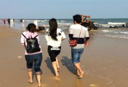 结束了上午的旅程,匆匆吃过了午饭我们去了海边,微凉的风、沉寂的海、还有陶醉的我们。接着我们乘船在海上观光游览,融入了海的世界。还有风声、被激起的浪花声、我们的笑声都是最美的风景。