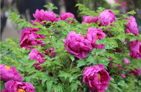 在往前走,我们就看到在雨中特色的的牡丹园。雨越下越大,大雨的到来让我们无缘见到阳光明媚下满园盛放的花海,但同样也让我们看到了牡丹的别样风情,也是一桩幸事。