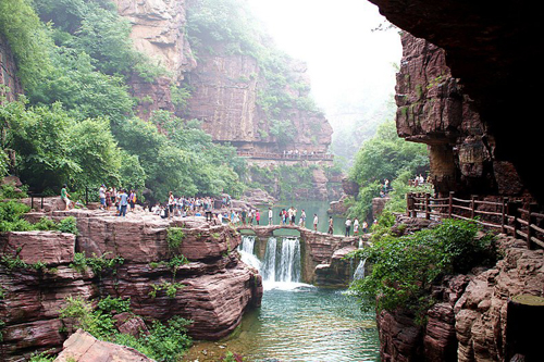 早晨我们四个集合后,一路高歌,向着云台山飞去,因为没有一个人知道路线,所以一路上我们只能依靠手机导航和路标,到修武县后,还问了很多行人,不过总算顺利到达目的地——云台山。虽然是星期一,可能是因为免费的原因,景区的人还是很多的,我们买过交通票后,就直奔景区,因为就一天的时间,所以我们第一站选择了红石峡,一路上有山有水,拍照的背景都是人,所以也没法留下更多的照片,只是欣赏身边的风景,在山水中感受大自然。生活在繁华是大城市,试问一下,我们有多少时间可以静下心来,放弃世俗,思考自己的人生,细想自己到底想要的是什么?一路上看到形形色色的人,每个人的表情都不同,但这也恰恰反映出他们的内心和生活的经历。愿每个人都是快乐的,不为生活的琐事而折磨。