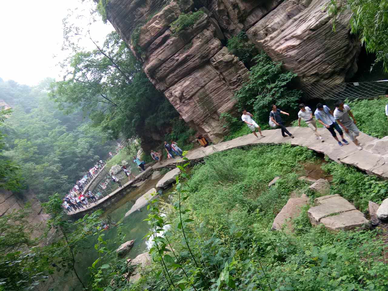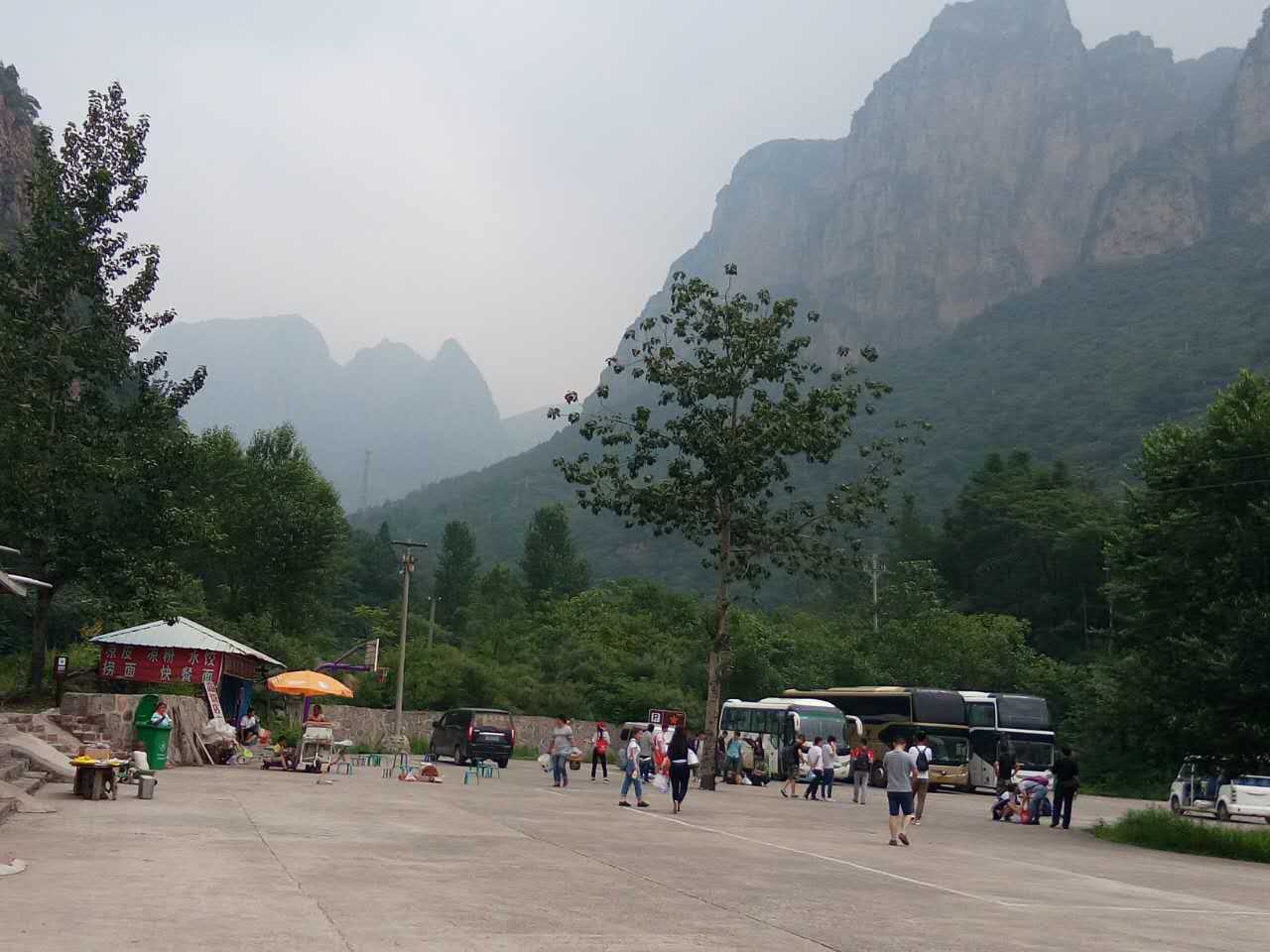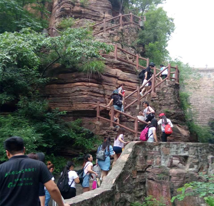 我们立马整好着装,背起行囊,紧集合,列三队,蹬上大巴,向着“新乡辉县秋沟”风景区出发。过黄河滩,穿隧道口,翻崎岖山路,经过长达四个小时的疾驰,一跃进入山脚下。