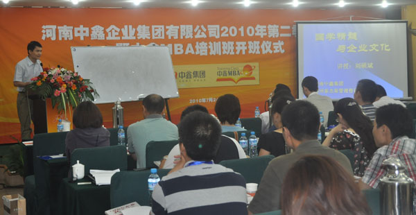 中鑫集团MBA在中鑫集团董事长、总裁季卫东先生的关心与支持下,由人力资源总监陈义力先生作为项目牵头人,经过悉心筹备,于2010年7月正式开班授课。首届94名学员是从1000多名中鑫员工中严格选拔产生。在这里没有公司总经理、经理等上下属关系之分,也不考虑什么岗位和职务,只有同一起跑线的学员们,一切按班委会要求执行。这次MBA培训历时18个月,对整个中鑫集团来说是首次,对参与培训的大部分学员来说也是首次,为了让学员们在培训中得到真正的提高,在集团人力资源总监亲自组织和操作下,经过人力资源部的调查,最终确定了符合公司实际情况与需求的18门课程,并设计了一整套教学方案与激励措施,旨在使每位工作数年,重返课堂的学员们通过培训学习得到启发,提高处事能力与工作技巧,将整个中鑫集团各层人员的个人素养提升到新的层次,为中鑫集团培养出一批企业需要的人才。