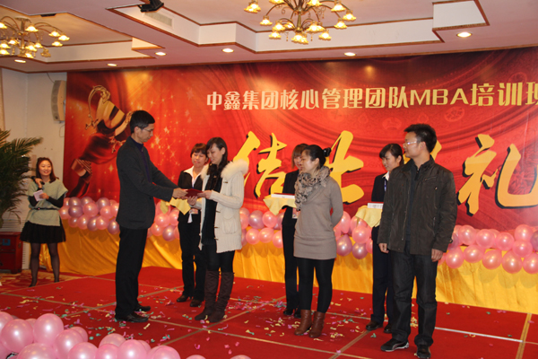 MBA培训班由集团人力资源部主办,对中鑫核心管理团队举行为期一年多的专业培训,目的是为了提升中高层管理团队综合技能水平,弥补技能短板,为集团及各分公司事业发展开发和储备人才,为员工晋升提供评测依据。2010年7月份,集团MBA培训班在河南饭店开班;2011年11月份,集团MBA培训班又在河南饭店结业。其间共举办了《国学与企业文化》、《TTT训练》、《有效沟通》、《非人管理》和《经济法律实务》等18门培训课程,所有课程聘请的都是国内知名教授或专家。顺利的开始,圆满的结束,让学员们感慨颇深,来自科技的学员谭金鸽在谈到结业心愿时说,“非常期待集团的下一次MBA培训。”