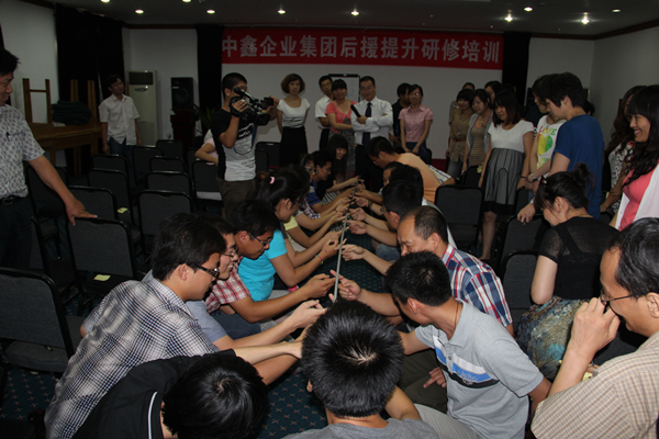 培训的具体内容摒弃了传统的说教形式,采取了游戏互动形式,所以整场培训下来大家都劲头十足。刚开始,讲师用“螃蟹走路”的故事开场,示意着本场培训的与众不同:有的螃蟹横着走,有的螃蟹直着走,所以无论讲师以什么样的形式授课,请大家不要惊奇。接下来讲师给大家分享了在成功的道路上意愿和方法的关系和比重。简单的理论结束,妙趣横生的游戏开始,主要有:人生百步、天使游戏、抬杆同起同落、坎坷人生路、人生五样等。