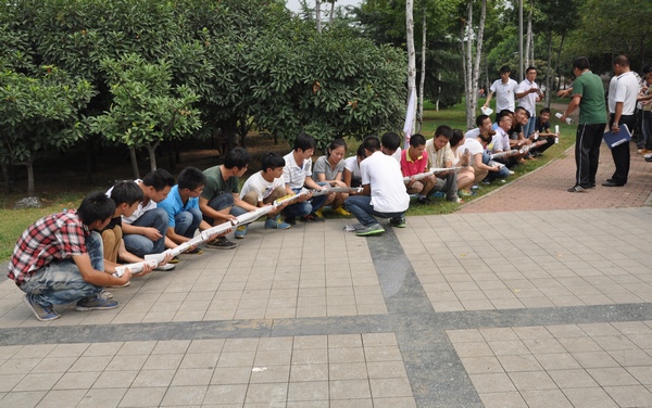 在25日的培训中,45名新员工首先进行了一场军事素养训练,在纪律养成的同时感受团队的力量。在“移花接木”项目中,为了能够尽快到底目的地,“激情队”的成员大汗淋漓的背着另外一个组员抵达终点。在分享游戏感受时,队长坚定的告诉大家:“因为我们是一个团队,所以不抛弃也不放弃任何一个人”。
