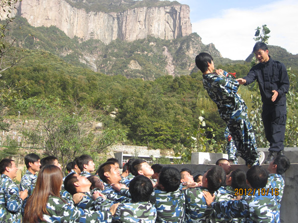 此次培训首先进行了军事训练和团队组建,严格的军事训练迅速使员工进入到角色,提高团队士气。团队组建活动要求全员必须做到“团队时刻在心中。”所有队员积极参与:想队名、口号、队歌、绘队旗,15分钟完成团队组建。