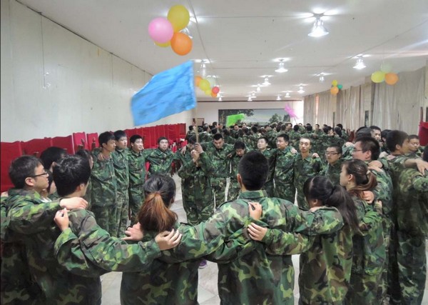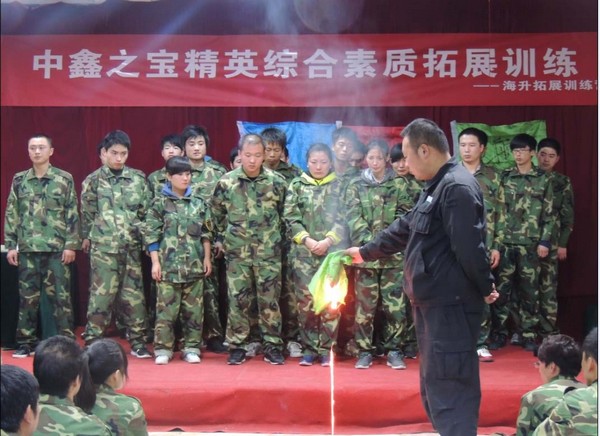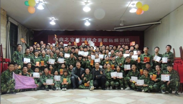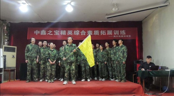 第一天的第一个比赛项目是沙场点兵,每队有一名教练背对着所有队员,每个队员在规定的距离内大声的呼喊“我是中鑫之宝最优秀的战士,我要成功,我会成功,我一定会成功”用你的自信,真诚,勇敢和毅力去打动教练,直到可以站到教练的身后。第一个所有队员都通过考核的团队为比赛的胜出者。看似简单的比赛,伙伴们一次次往返在教练和自己的队伍之间,一遍遍大声的呼喊着,可是却没有人成功的通过,换来的却是教练员的嘲笑和讥讽“你不行,你没自信,你放不开你自己,你是个懦夫,你会把你的团队带成倒数第一……”时间一分一秒的过去,可是站在教练身后的人依然寥寥无几,大家奋力的喊着,歇斯底里的叫着,“不,我可以,我有自信,我有能力,我可以把我的团队带好,我不会给自己的团队拉后腿,我会坚持,我一定会坚持”,大家把嗓子都快叫破了,声音都变得沙哑,有的女孩子急的眼泪都出来了,但伙伴依然在坚持,在尝试挑战着,擦干眼泪用沙哑的嗓音喊出心中的声音,我们一定会成为中鑫之宝最优秀的战士!