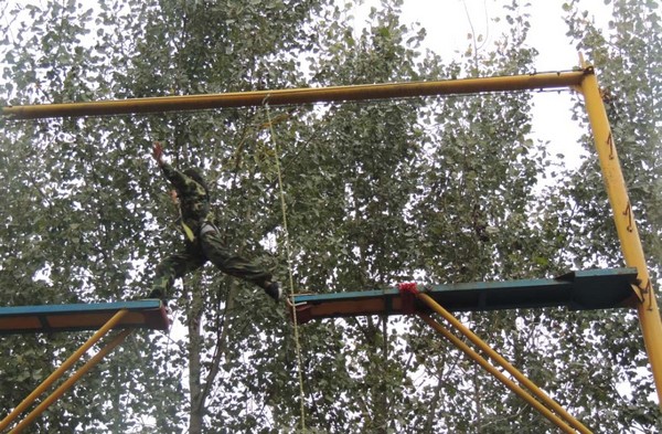 25日早晨7点15分,第二批参加拓展的伙伴们准时在公司集合,在相关负责人指挥下,7点30分所有人员已登车完毕,朝着目的地的方向出发。大约40分钟后,到达我们本次拓展的训练基地,由海升拓展公司提供的西安国泰山庄。到达目的地后,教练员对我们本次拓展进行了一个简单的介绍,所有伙伴按要求领取了房间钥匙和训练服。“全体学员在拿到钥匙和服装后到各自的房间换上统一的服装,十分钟后到原地集合”这是两天来,我们收到的第一个命令,随着命令的下达,我们为期两天的拓展训练也正式拉开了帷幕。