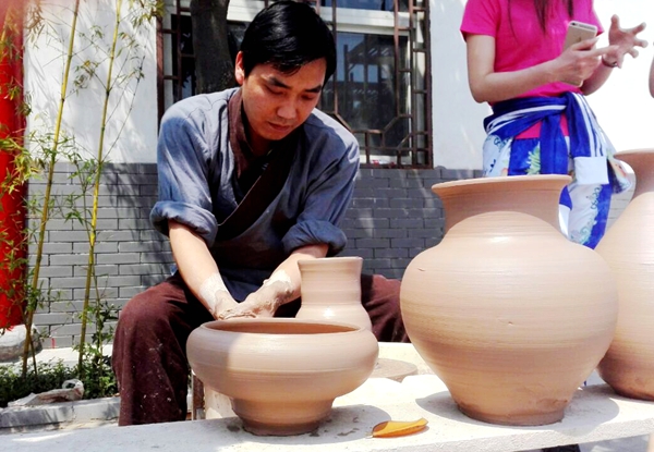 中午,我们在神垕镇四合院尝农家饭,香辣土鸡,油酥饼,禹州焖子,酸辣肚丝汤等禹州特色美食让我们唇齿留香。吃过饭,我们稍作休息,就来到了神垕古镇,我们寻访了张九龄故居,温家大院,白家大院,苗家祠堂等,这些由精美石雕,瓷艺铸就的建筑,古朴典雅,古色古香,有些古房居然整个墙壁都是由瓷罐垒砌的,让人啧啧称奇,流连忘返……
