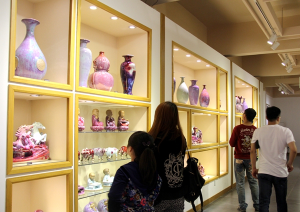“红为最,紫为贵人,天青、月白胜翡翠……”在解说员的讲解中,我们了解到每一件钧瓷都是绝世无双,奇美珍品,那出彩的釉色效果,真是栩栩如生,让我们叹为观之。听着古乐,赏着钧瓷,看着穿着宋服的钧瓷匠人,我们仿佛穿越到了几千年前的大宋王朝。