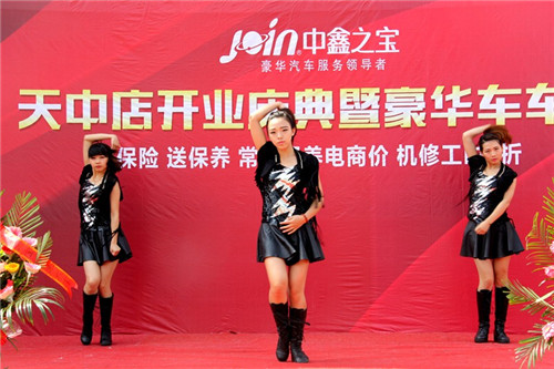 开业期间,中鑫之宝天中店推出了一系列活动惠顾新老客户 开业庆典活动:?5月16-20日期间,常规保养电商价,机修工时3折;?凡进店客户就有精美礼品相送! (恒大冰泉水+真皮驾驶证包+保养/保险礼券来就送,消费更有名牌定制雨伞,沙滩椅、茶具等超值大奖!) 限时促销活动:?买一年保险 送1年免费保险(限时促销5月1日-8月1日)?办理终身免保卡 送超值大礼(限时促销5月1日-6月30日)?办理预存次卡 送美容大礼包(限时促销5月1日-6月1日)