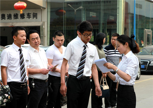 早上7:30,人保高层团队分别在中鑫之宝郑州中博店、花园店、圃田店、中原店集合,中鑫之宝郑州四店总经理分别致欢迎辞,对他们的到来表示热烈的欢迎。在扫街前,中鑫之宝郑州市场部的营销人员还为大家进行了扫街话术演练,接下来就是扫街实战,由市场部人员一对一带领人保高层领导体验扫街。