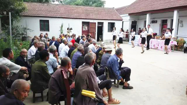 在敬老院里,大家为老人表演了舞蹈,老人们看到年轻人来探望,脸上都洋溢着笑容,伸出颤抖的双手,和大家打招呼。还有老人主动的为大家唱起了河南豫剧……