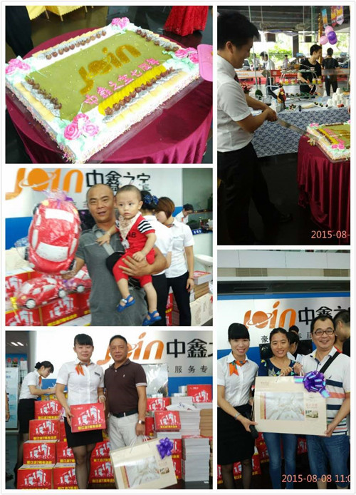 2015年8月8日,是晋江店七周年店庆的日子。早上7:30,大家精神饱满的来到公司迎接店庆,晋江店总经理松东良在晨会上进行讲话,他说:“七年的征程让中鑫之宝晋江店深深的知道:服务与技术才是生存和发展的硬道理。晋江店能走到今天,和客户的支持信赖是分不开的,和所有晋江中鑫汽车人也是分不开的,因为有了大家的辛苦付出,才有今天的成绩。我们将继续努力前行,发杨艰苦奋斗精神,不辜负客户对中鑫之宝的信任!”