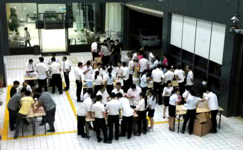 中秋节转眼就又到眼前了,为了提高员工积极性,加强团队凝聚力,中鑫之宝厦门店9月22日也举办了中秋博饼活动,这是至2013年开业以来公司组织的第二次博饼活动,也是公司给予员工的一项中秋福利。从九月初,公司的每个人都在期待着博饼,期待着能博到状元,22日18点的时候,外出扫街的伙伴都尽早的完成任务赶回来参加博饼,车间兄弟也是尽力的把车子维护完,男生们都积极的准备着需要博饼的桌子礼品等。
