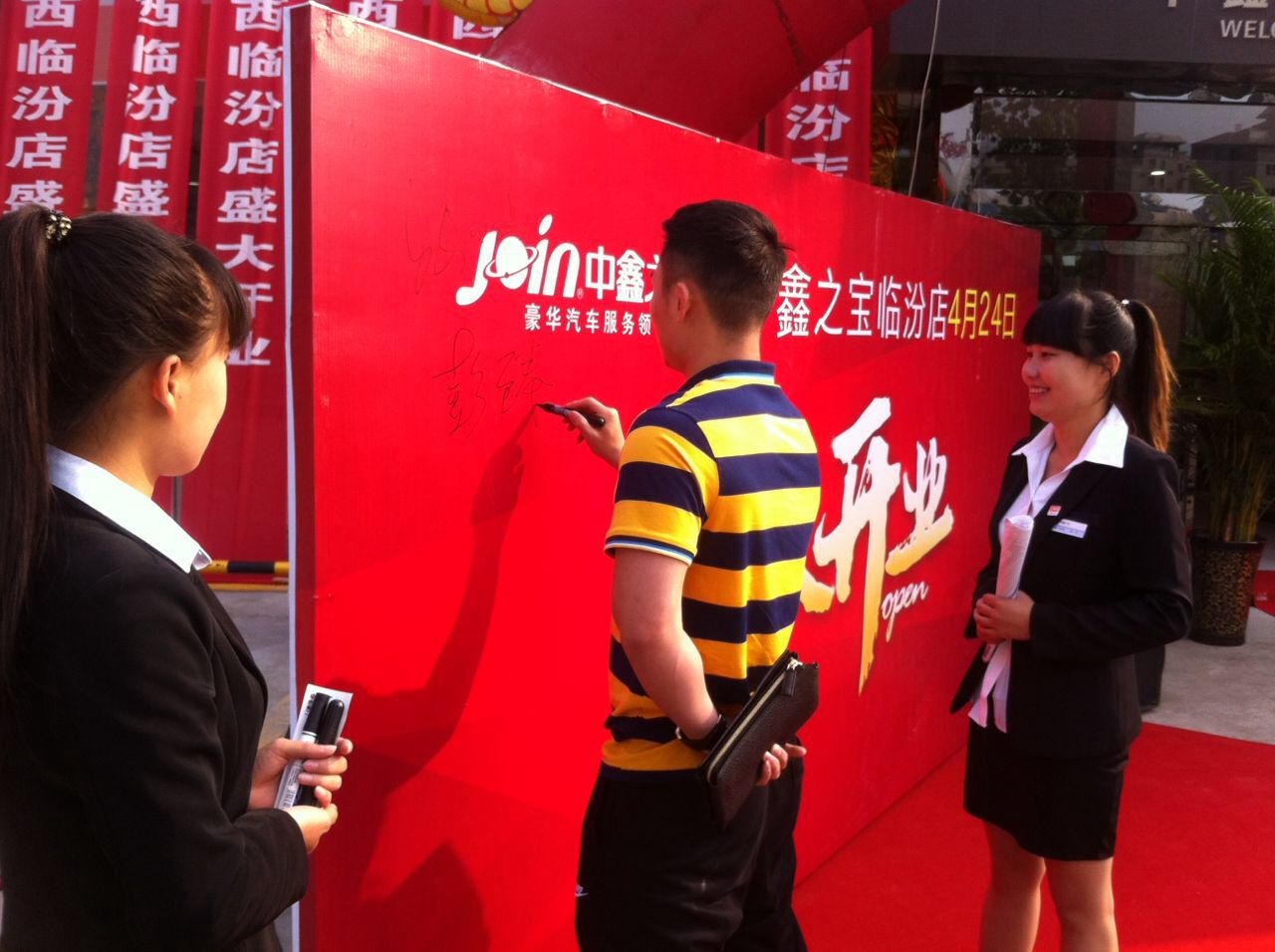 2016年4月24日,中鑫之宝临汾店举行了隆重的开业仪式。临汾店是继太原店、晋城店、长治店后在山西省运营的第四家店面,设有产品展示区、贵宾接待区、业务洽谈区、客户休息区、贵宾休息室、售后服务接待区和维修车间等功能区域,引进了豪华车最新检测、维修全套专用设备,为客户提供专业的售前售中售后服务。