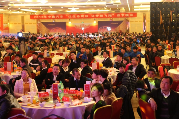 下午19点,中鑫汽车2013年迎新春家宴正式开始。开场舞蹈《鼓动梦想》火热的气氛博得了阵阵的叫好声;集团客户部的舞台剧《这些年那些事》与广本店售后部的舞蹈《so much betta》让现场的气氛再达高潮;中鑫之宝花园店配件部的舞蹈《最走红》、中博奔驰的情景剧《特别维修》,活跃了整场气氛,由中鑫之宝花园店精品美容部和郑州店市场部组织表演的军体拳《中鑫军魂》,撼动整个现场;中博宝马舞蹈《奇幻旅行》把观众再次带入光影的奇妙世界里!整个年会的节目形式各异,让人目不暇接,大家用心投入的表演无不展现着中鑫人创新、智慧、自信的风采。整个年会现场歌声、掌声、欢呼声不断响彻。年会现场宛若成为一场盛大的娱乐盛宴,呈现出一片和谐、温馨、喜庆的氛围。