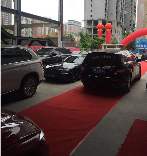 市场部兄弟引导客户走过红毯,在签到处签到,登记车辆信息,放入抽奖箱