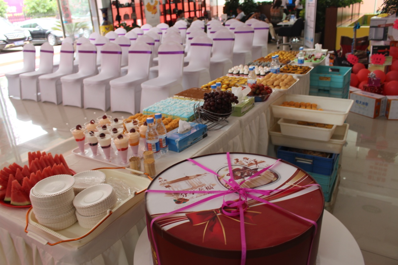店庆当天,南阳店全体员工都早早的集合,详细划分每人当天负责的部分,一个个比平常更神采奕奕。现场早早的布置好,等待贵宾到场。