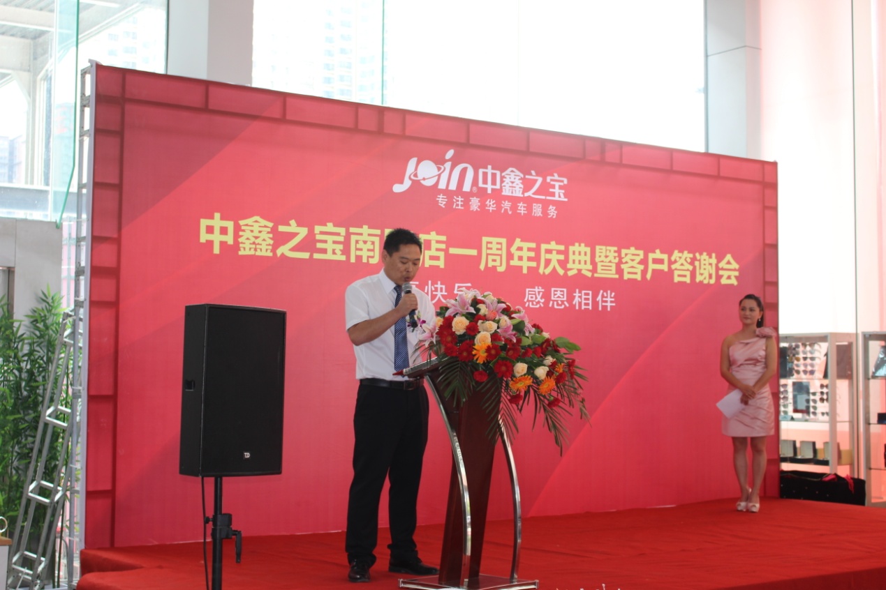 南阳店总经理刘亮真诚致辞,他说,“多年的市场磨练,让中鑫之宝人深深体会到,真诚、用心的服务客户是我们获得认可和支持的唯一途径。豪华车服务市场竞争从来都是激烈的,我知道我们不是最聪明的,比我们聪明的同行有太多。我们用我们笨拙的方式去接触客户,介绍自己,继而为您服务。为了技术创新,我们每周都坚持学习,开展技术训练营,希望在各项技术上都能有新突破,我们认真做专项,能让您少折腾的绝对不大费周章,力求让您花的每一分钱都落到实处。我们无疑是幸运的,我们幸运的拥有在场各位新老客户的信任,能够为你们服务是中鑫之宝人最大的幸运。如果说我们还算取得了一点成绩的话,这点成绩全仰仗在场的各位了。我向各位表示深深的感谢!”