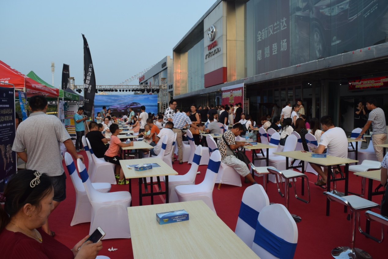 下午6点,鑫宝店的生日晚宴—啤酒烧烤节拉开了帷幕,鑫宝店的车主朋友们早早来到活动下场,我们早已准备好的烧烤场地,生日Party即将开始。